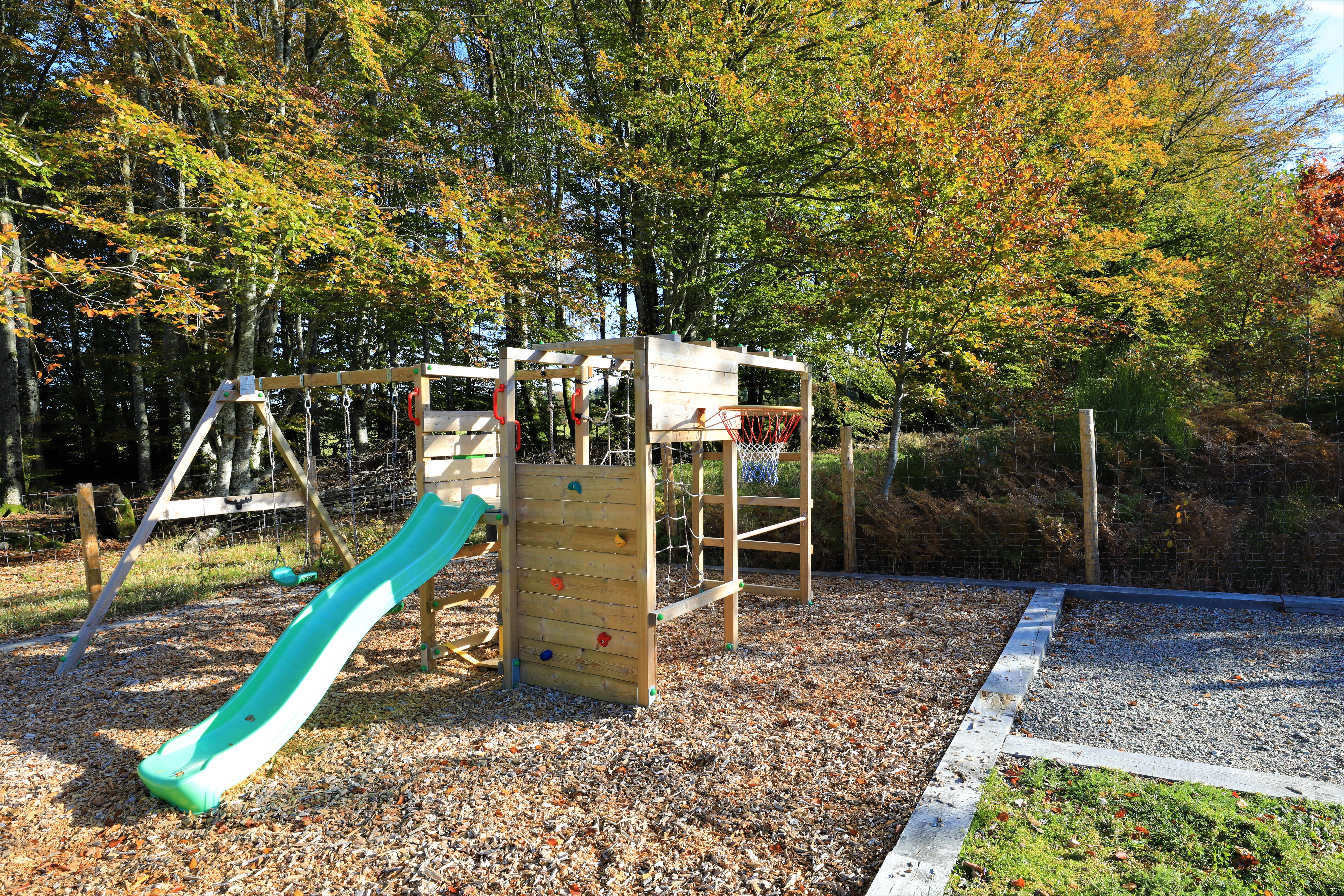 - Espace sécurisé clos de 2000 m2 autour du gîte avec aire de jeux pour les enfants